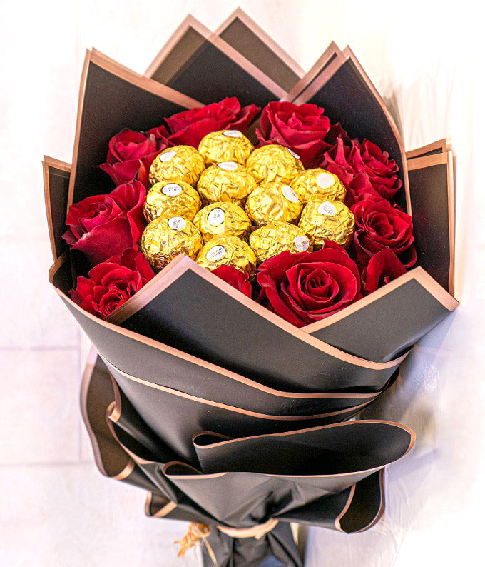1 dozen Roses & 1 dozen Chocolate Bouquet.